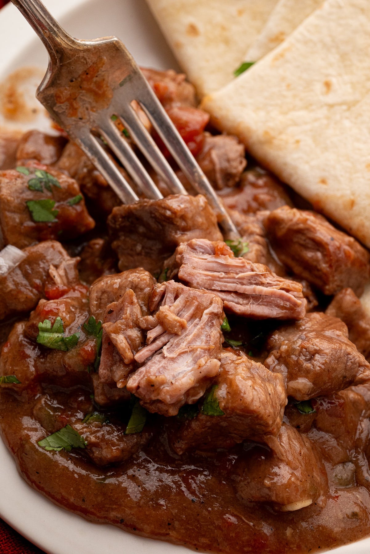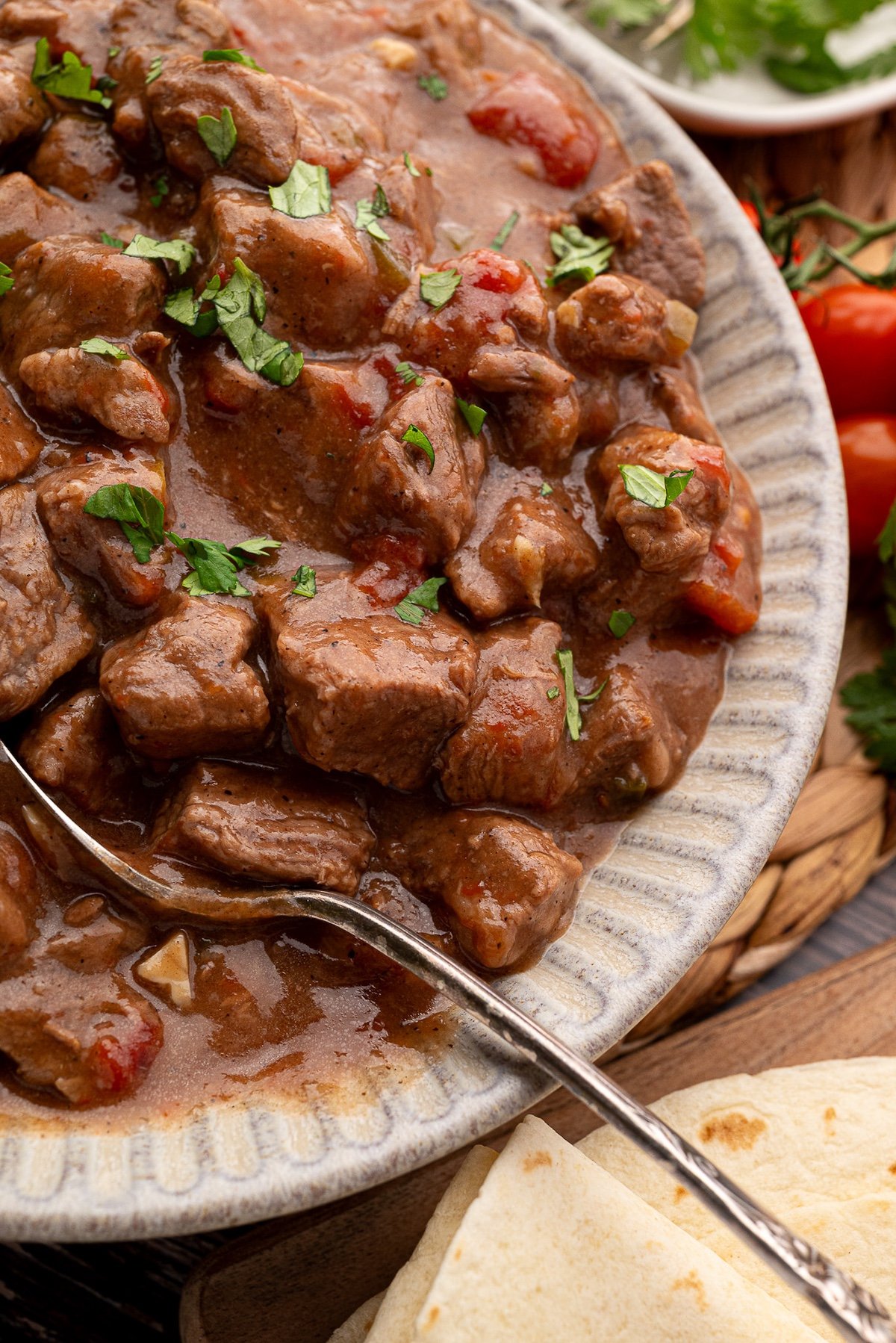 Serving: Serving suggestions for Crock-Pot Carne Guisada include with fresh flour tortillas, over rice, and with charro beans. You can also use the carne guisada as a taco filling. Garnish ideas include lettuce, avocado slices, shredded cheese and pico de Gallo.